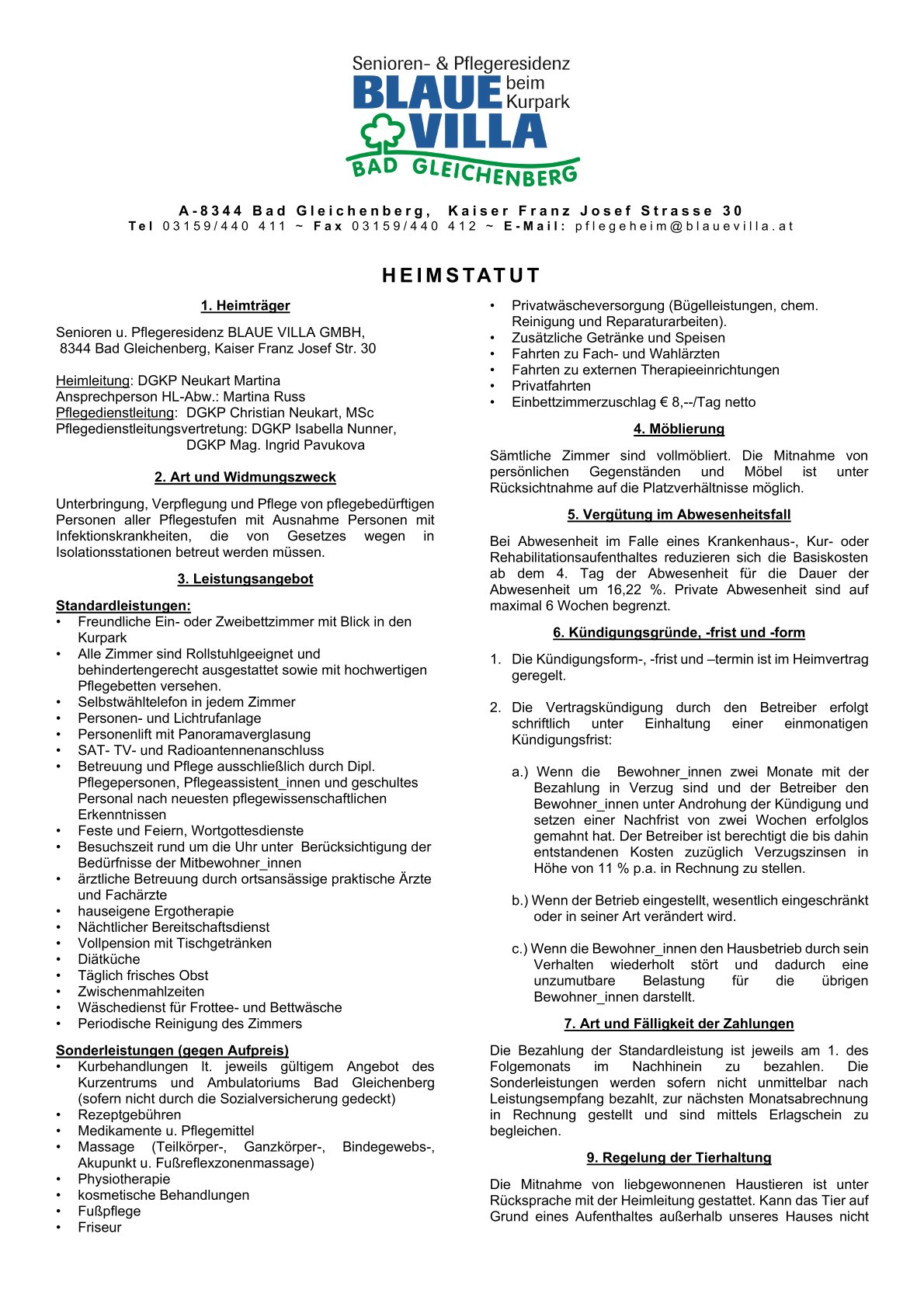 Für eine unverbindliche individuelle Beratung über die Kosten, Leistungen sowie die Kostenübernahme durch die öffentliche Hand für Langzeitaufenthalte stehen wir Ihnen gerne zur Verfügung.